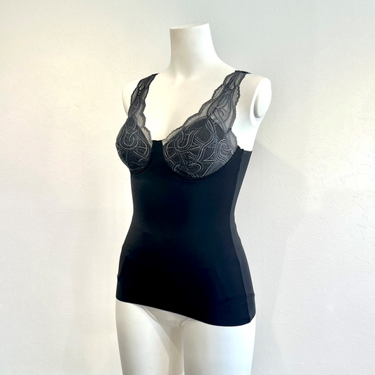 Fujikoは、肌に直接まとえるレースの中でも繊細で柔らかな日本編み立ての独自デザインのフォルポリバーストレッチラッセルレースを厳選し、高い吸水速乾機能と熱伝導率が高くさっぱりした着用感のマイクロナイロンフリーカットツーウェイとの素材マッチングをして着用映えする絢爛さと着用感の高い快適さを実現しています。